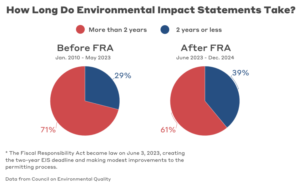 “Additionally,” the BPC pointed out, “CEQ data reveals that nearly a quarter of projects that completed an EIS since the FRA’s enactment took more than five years, with some extending beyond a decade.
