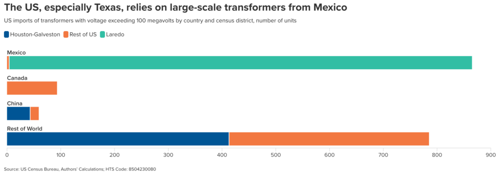 For example, transformers produced in Mexico are crucial for stepping voltage up for long-range transmission of electricity and then stepping voltage down for distribution to homes and businesses. There is currently a nationwide and global shortage of transformers, and lead times have surged from 50 weeks in 2021 to 120 weeks in 2024, according to Wood Mackenzie, the energy consulting and research firm, which also notes that the lead time for large transformers reaches four years.